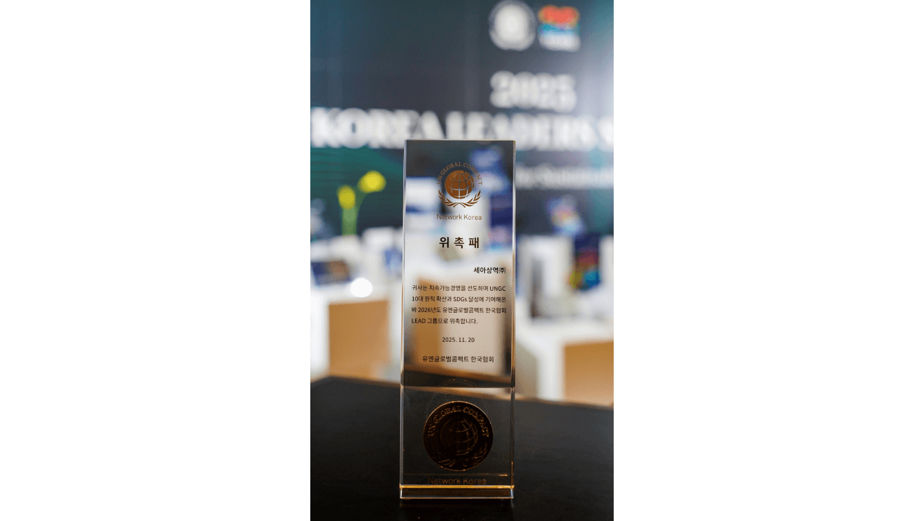 세아상역은 20일 유엔글로벌콤팩트(UNGC) 한국협회가 개최한 ‘코리아 리더스 서밋 2025(Korea Leaders Summit 2025)’에서 지속가능경영을 선도하는 리드그룹으로 선정됐다.